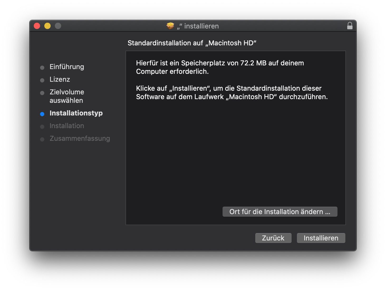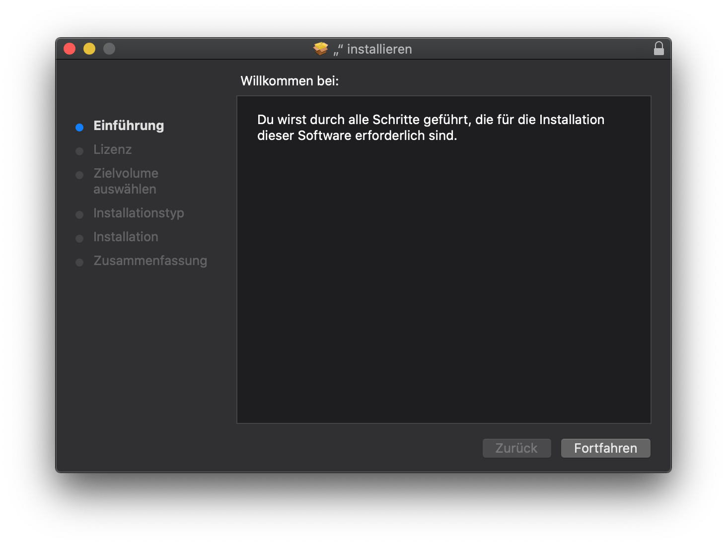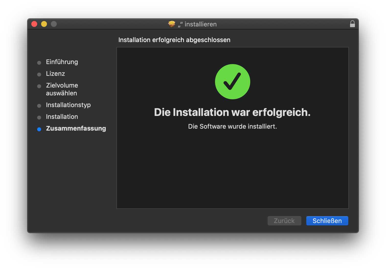 Bei einigen Macs sehen Sie das obere Fenster nach Abschluss der Installation nicht, Sie können folgendes probieren: