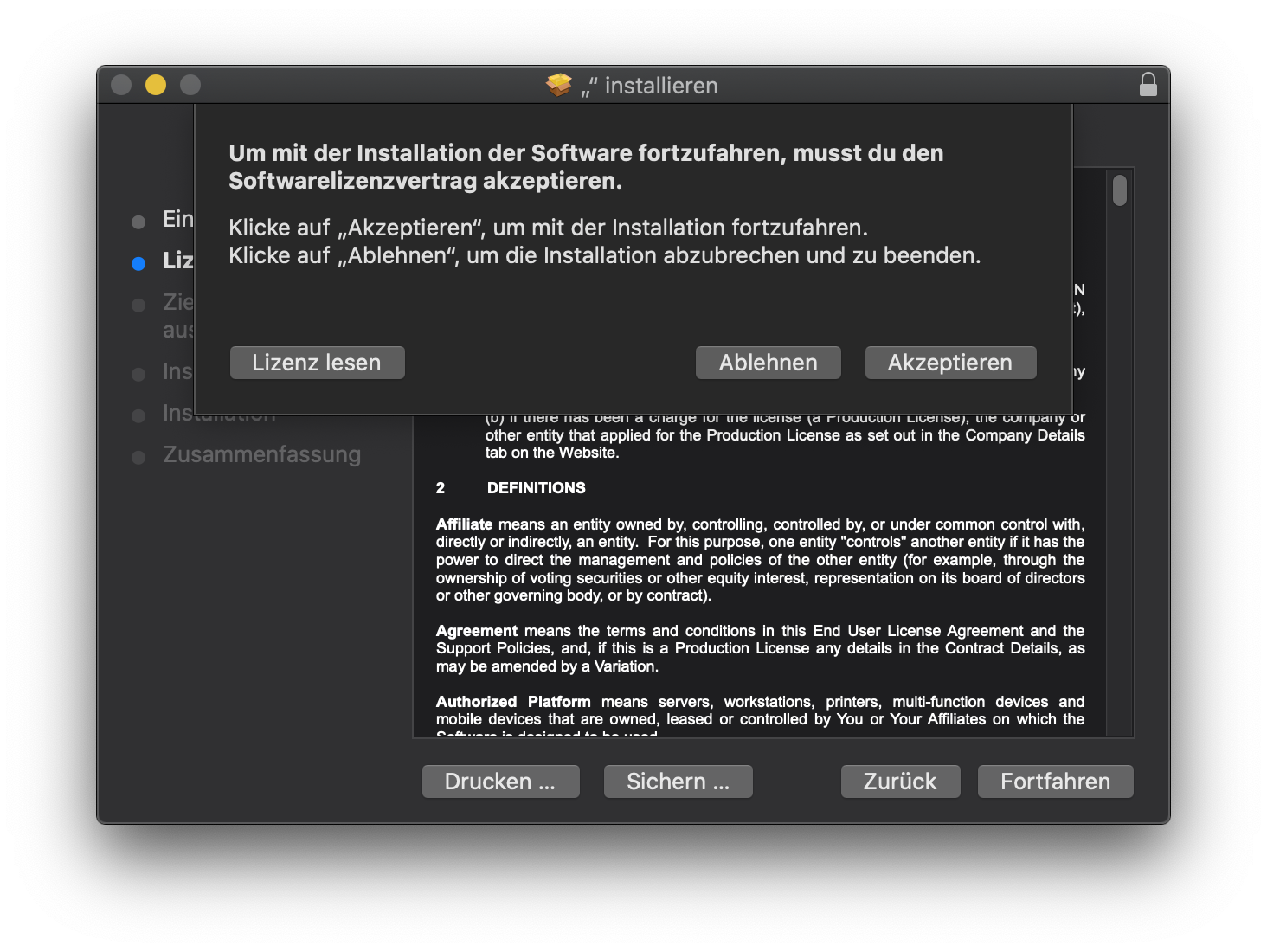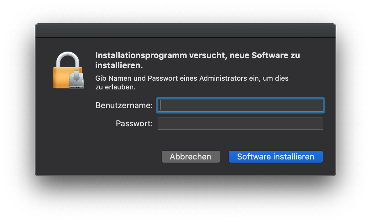 Anmeldeinformationen eines lokalen macOS Administrators eingeben