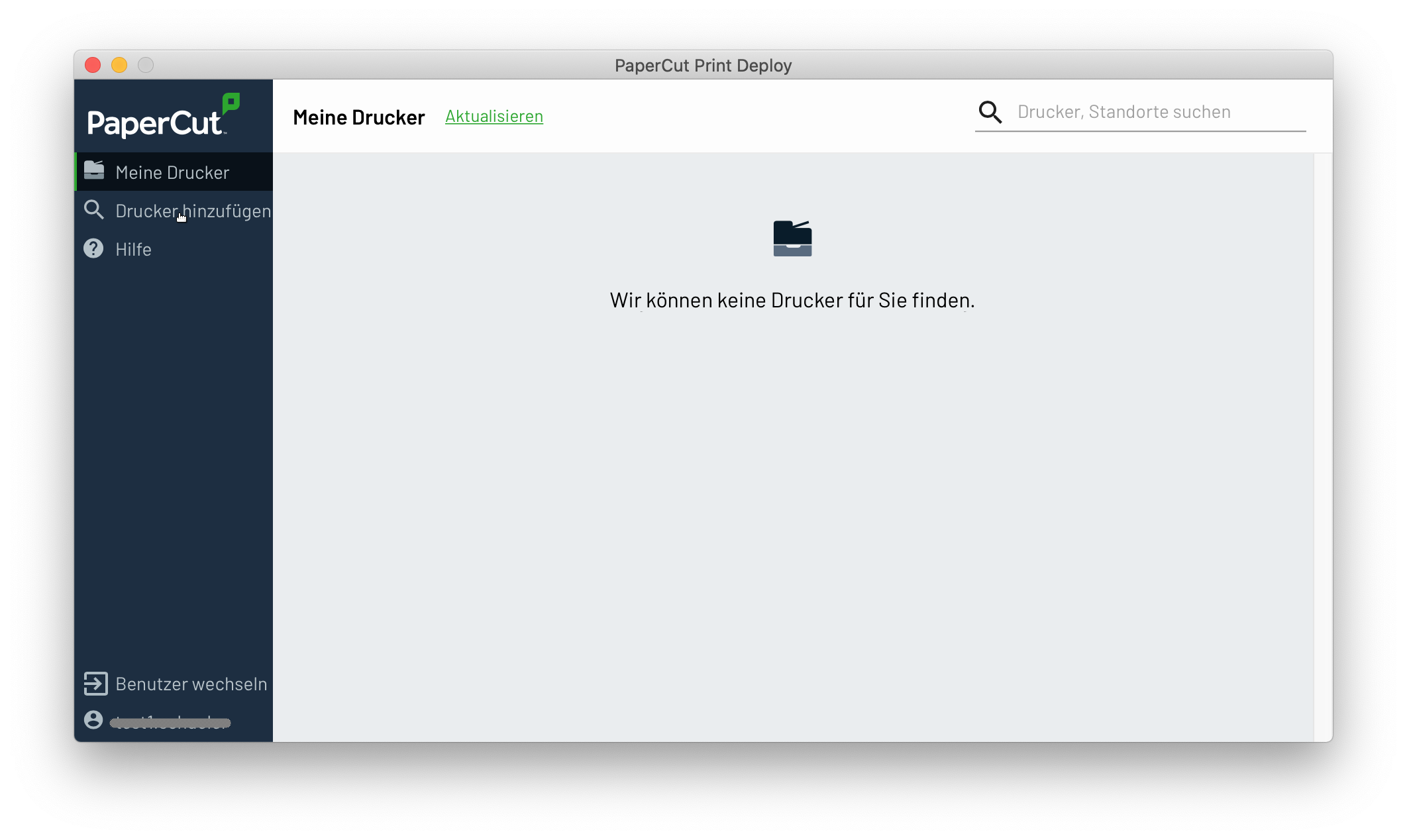 Tipp: Wollen Sie einen Drucker verbinden, den Sie bei der Erstinstallation noch nicht verbunden haben, klicken Sie auf das PaperCut-Icon in der Menüleiste, danach auf „View my Printers“.