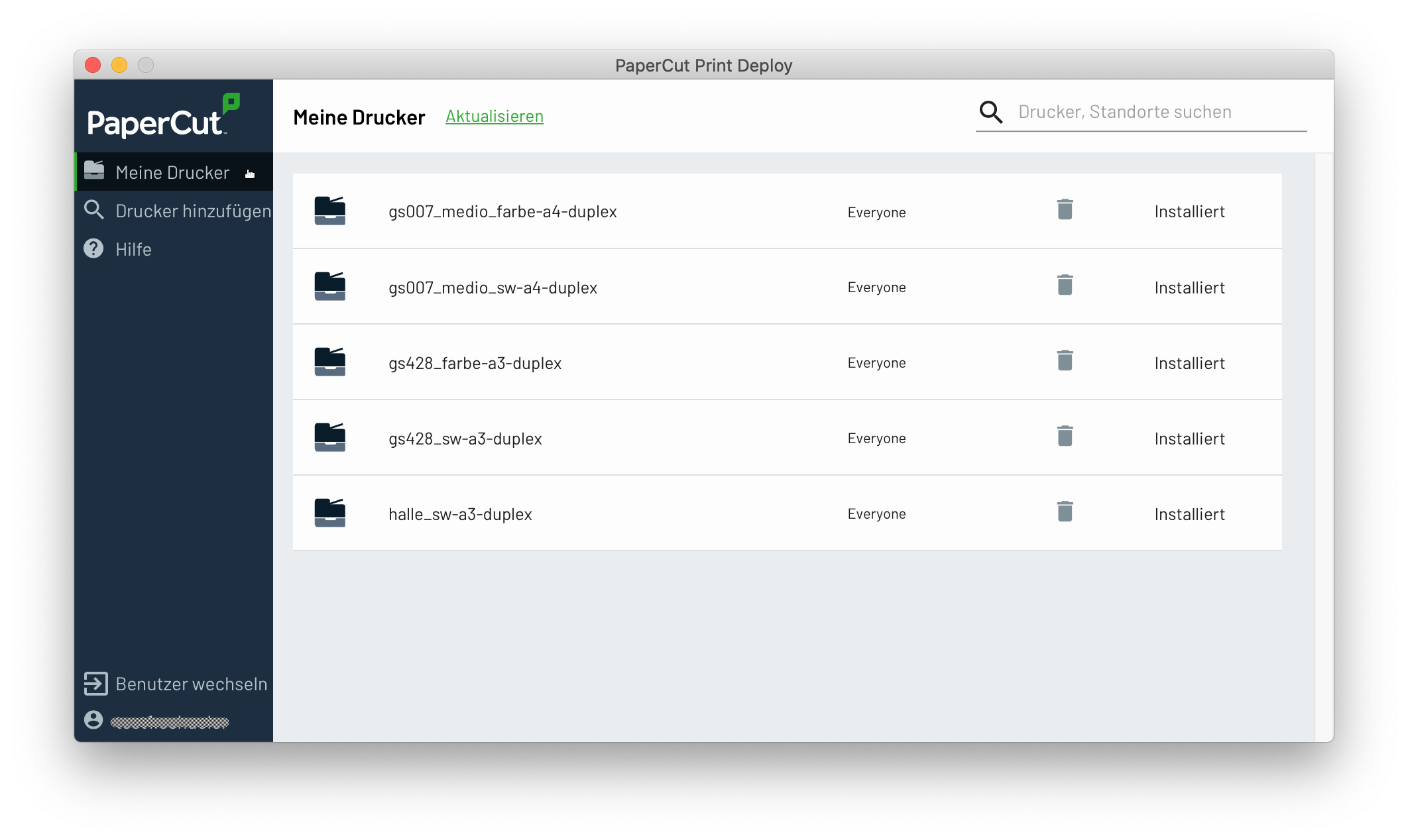 - Öffnen Sie den Finder, wechseln Sie in das Verzeichnis Programme, danach: PaperCut Print Deploy Client