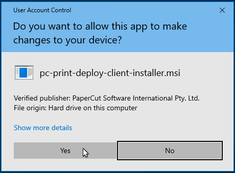 Nach der Installation können Sie 1) McAfee wieder aktivieren und PaperCut Print Deploy funktioniert danach auch noch.