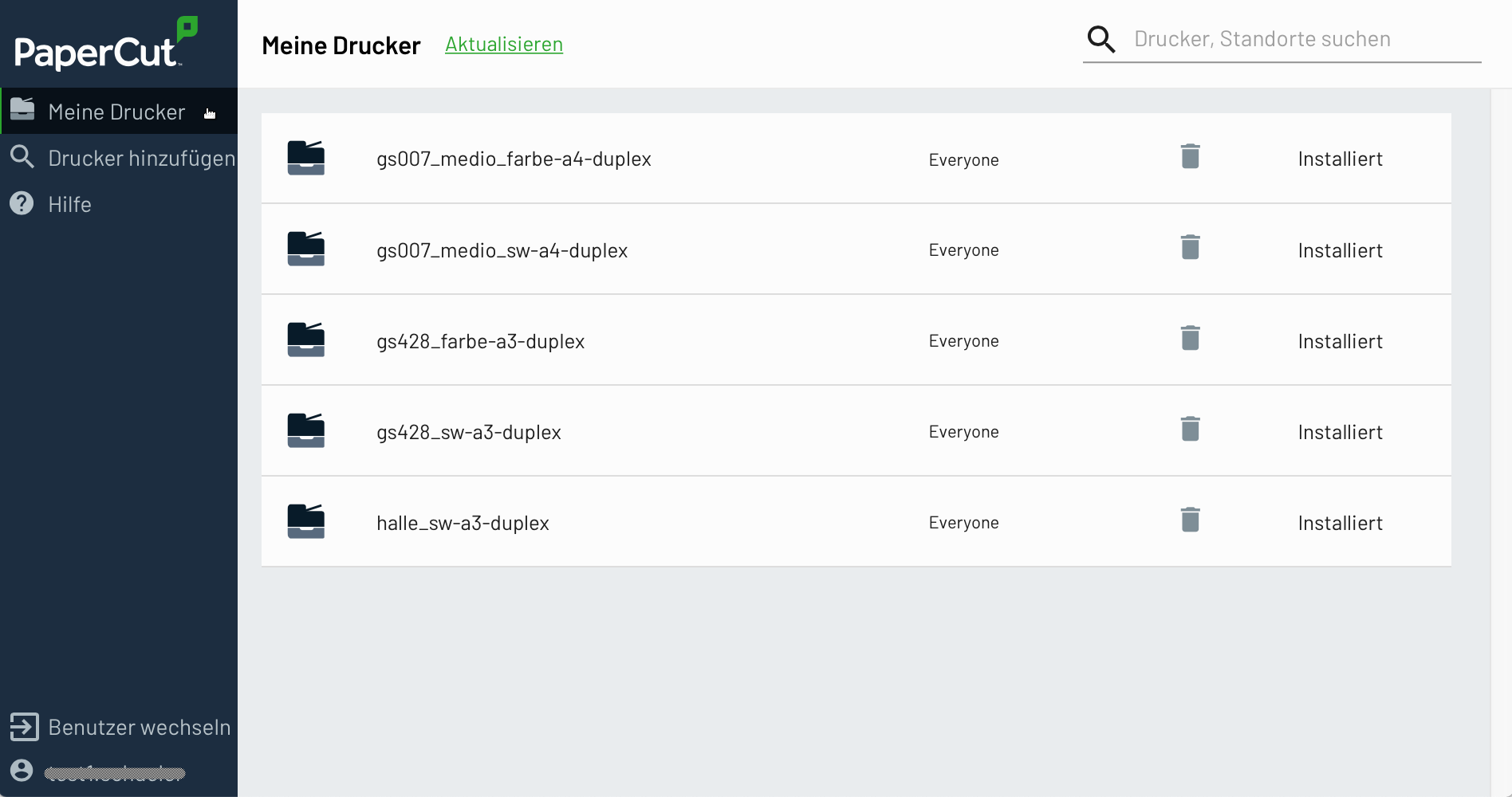 Tipp: Wollen Sie einen Drucker verbinden, den Sie bei der Erstinstallation noch nicht verbunden haben, klicken Sie in der Taskleiste auf das PaperCut Druckersymbol, dann „View My Printers“.