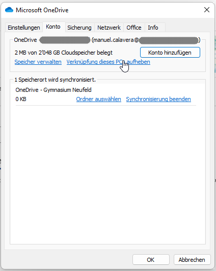 - Du bist nun mit dem OneDrive des Gymnasiums Neufeld verbunden.