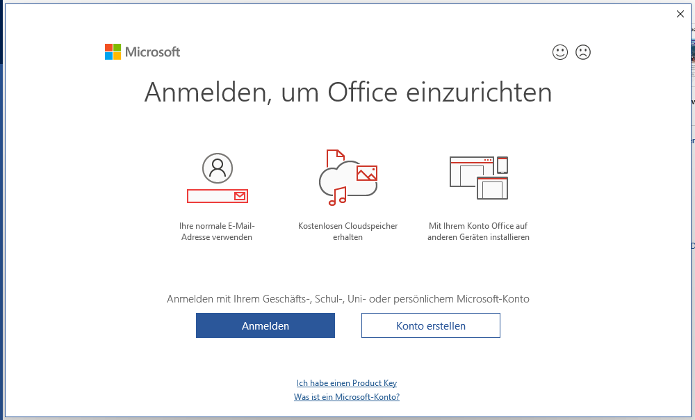 - Es erscheint eines der beiden unten abgebildeten Fenster (je nachdem, ob du mit deinem privaten Microsoft-Konto angemeldet bist oder nicht)