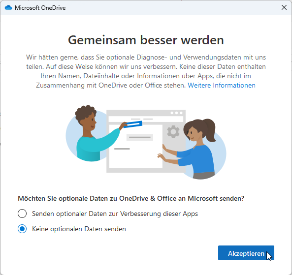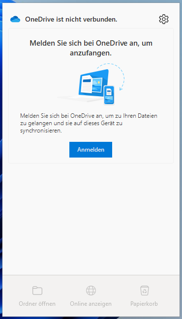 - Klicke auf das Wolke-Symbol von OneDrive. Falls du noch mit keinem Konto bei OneDrive angemeldet bist, öffnen sich nacheinander untenstehende Fenster.