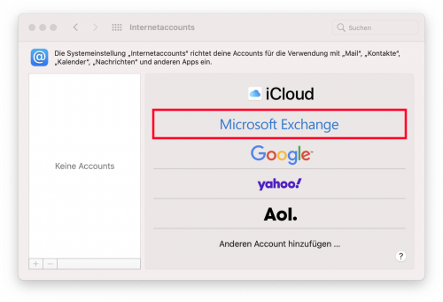 • Öffnen Sie die Systemeinstellungen und wählen Sie Internetaccounts aus.