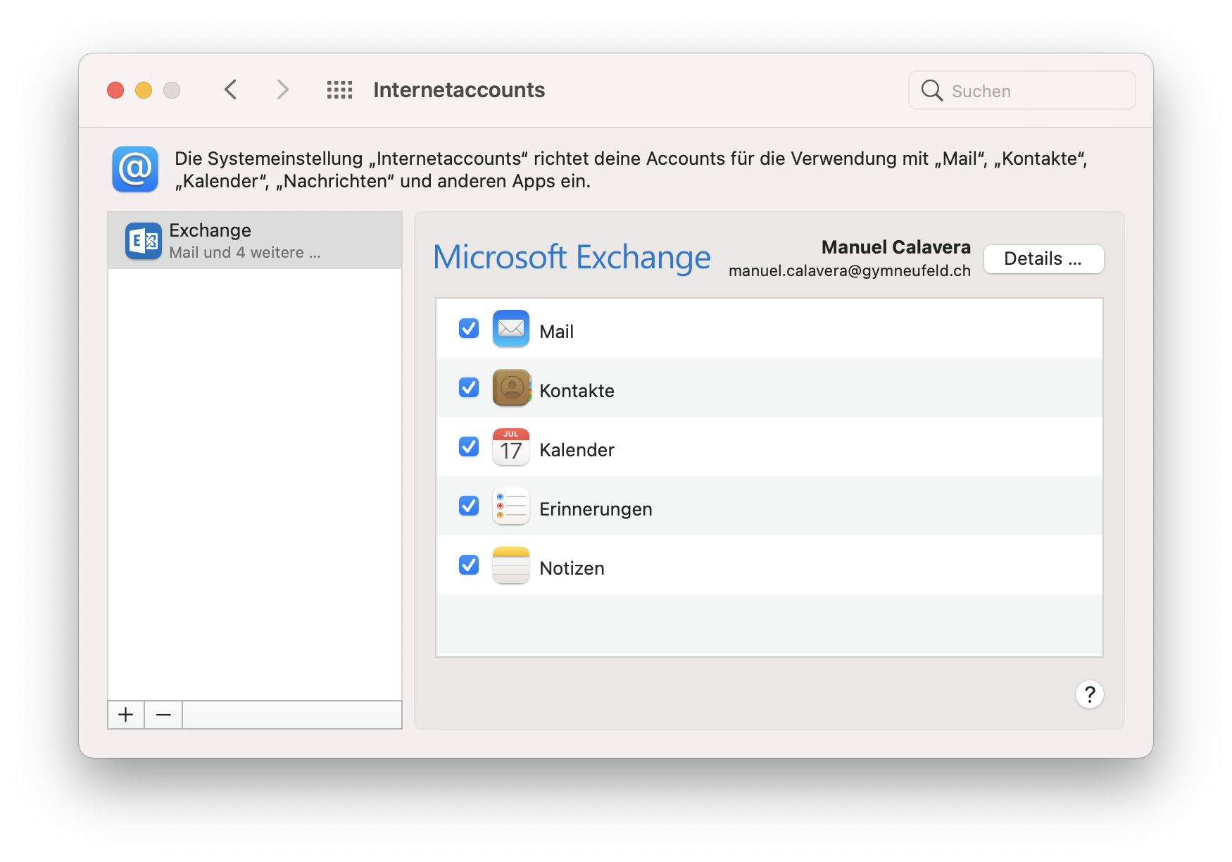 Nun ist das E-Mail-Konto inkl. Synchronisation von Kontakten und Kalendern eingerichtet